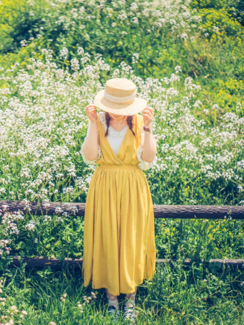 黄色のワンピースを着て森ガール風に🌳🍃