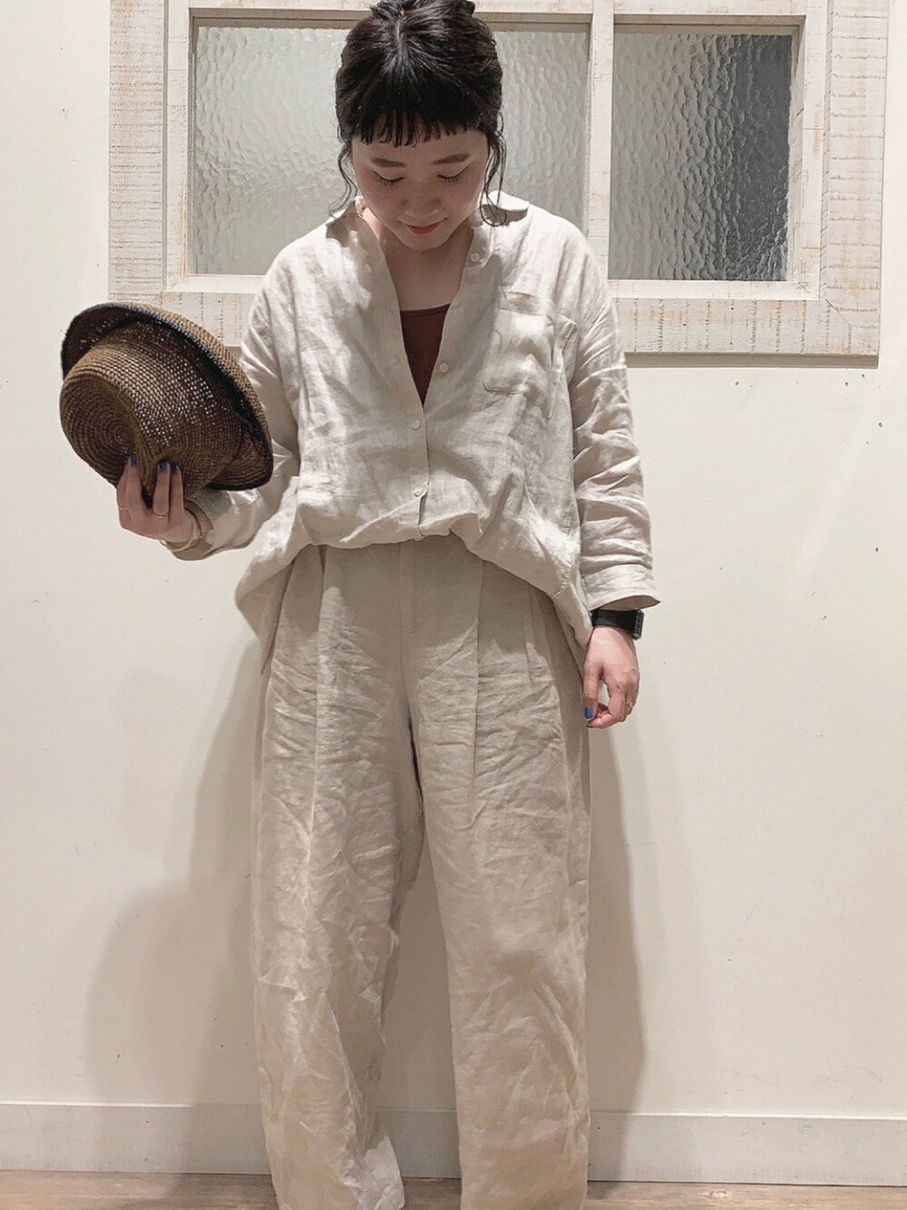 カザマキのその他パンツ「リネンストレートコクーンパンツ」を使ったコーディネート