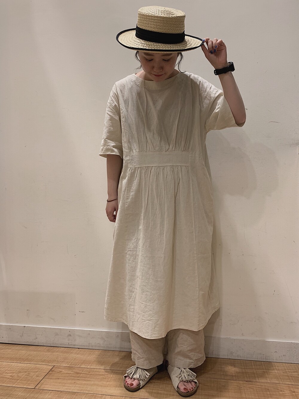カザマキのワンピース「綿麻ウエスト切り替えワンピース」を使ったコーディネート