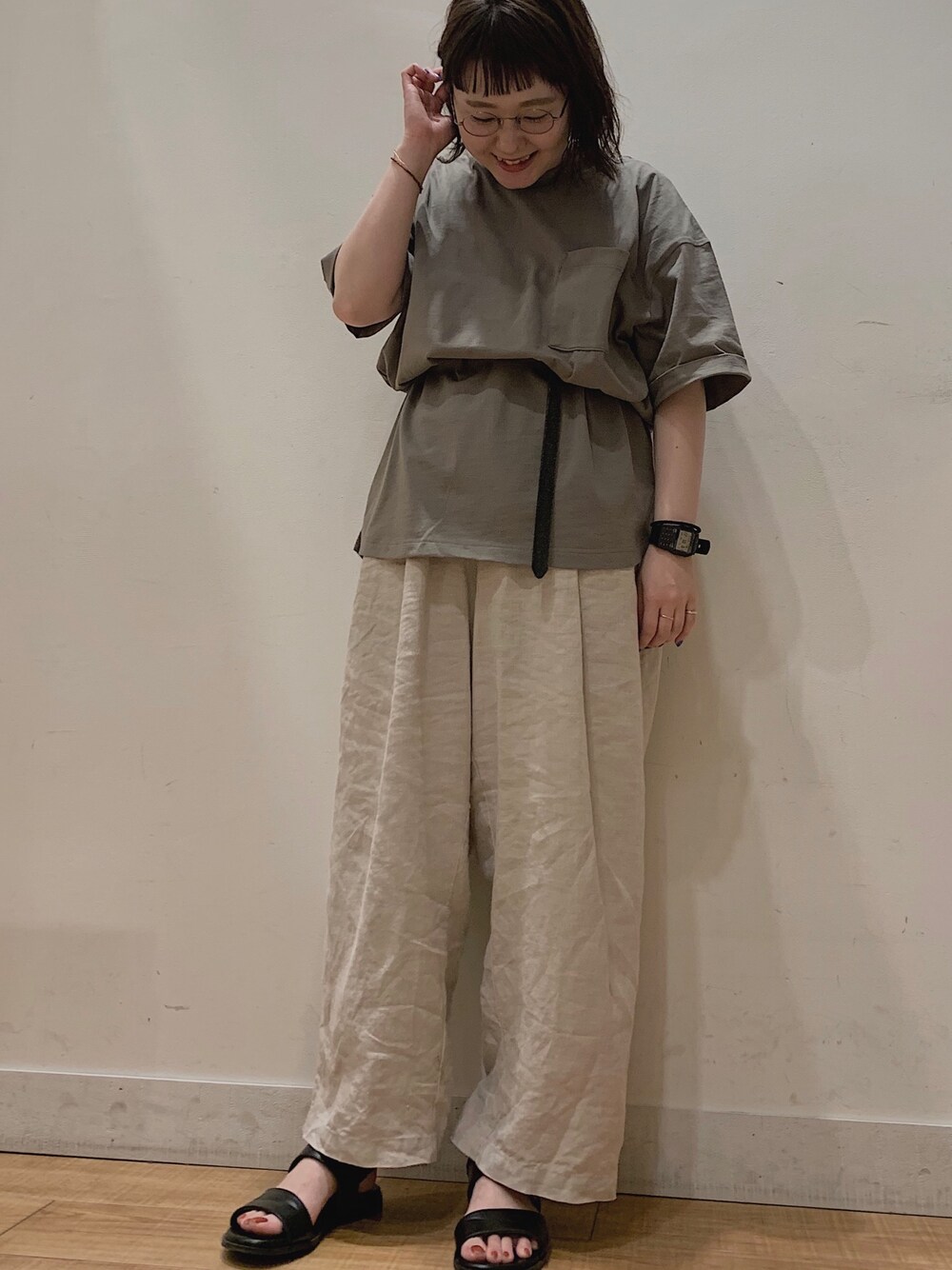 カザマキのその他パンツ「リネンストレートコクーンパンツ」を使ったコーディネート