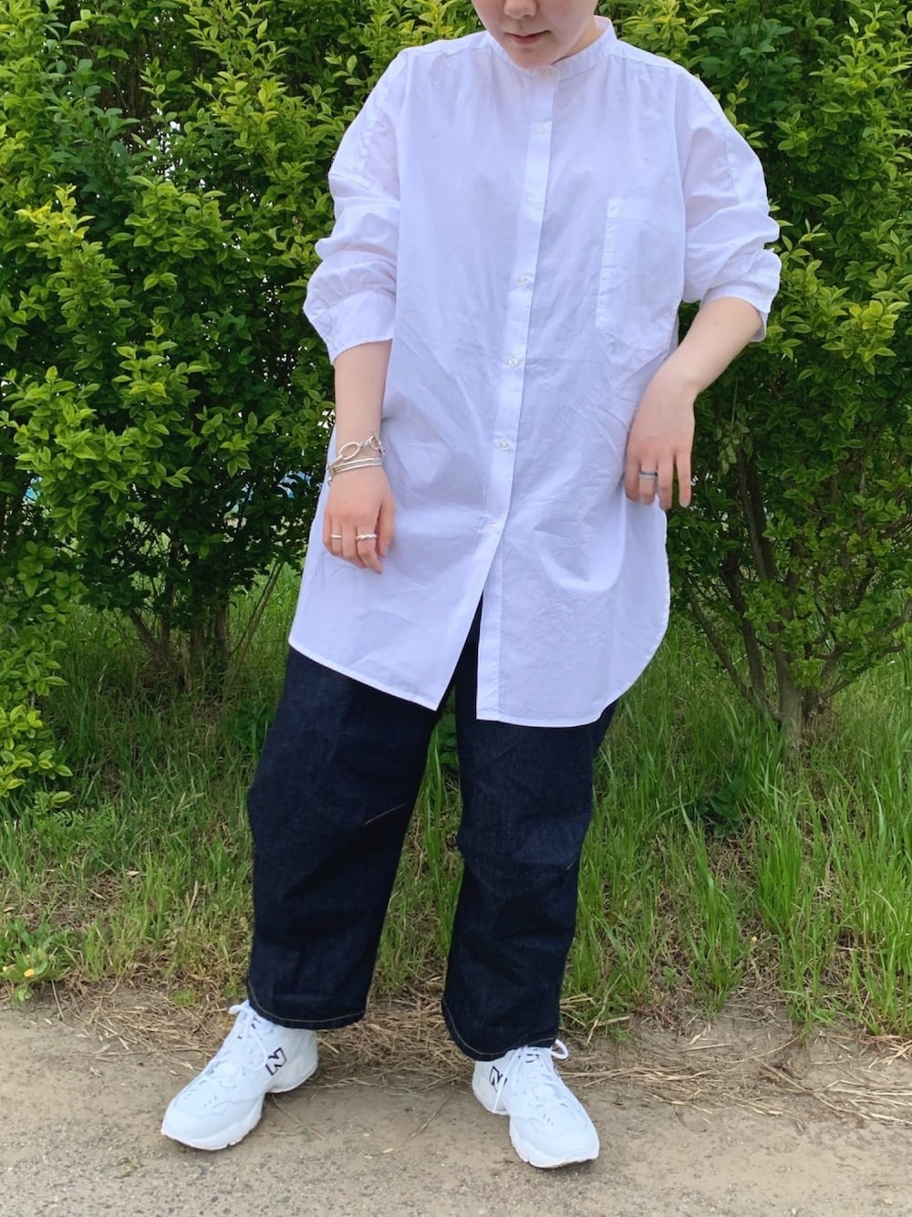 カザマキのシャツ/ブラウス「BIGスタンドシャツ2」を使ったコーディネート