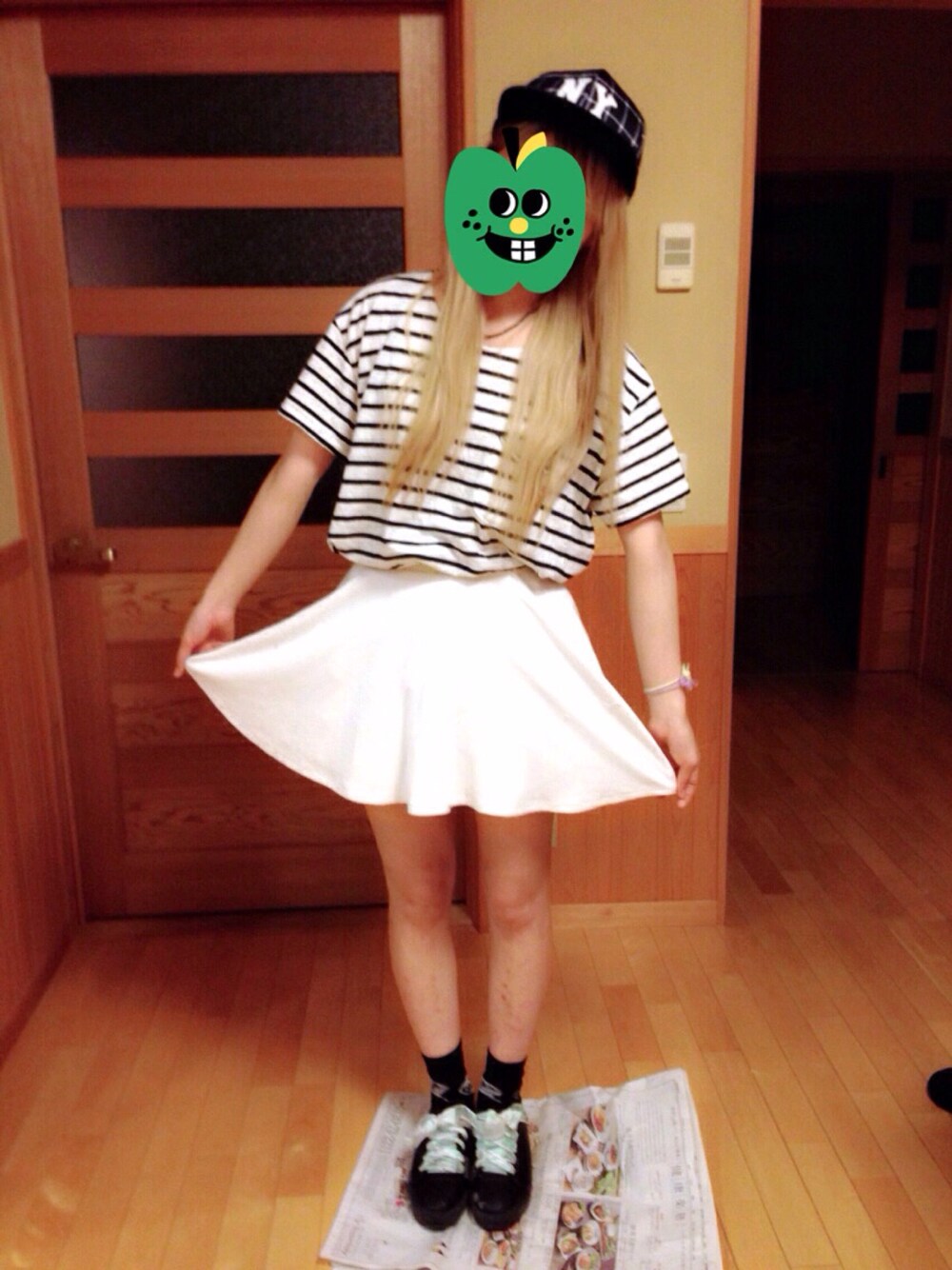 ホワイトコーデ( ー̀εー́ ) 最近ボーダー好きです。