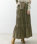 シャーリングの素材感で甘すぎないロングスカート🦁 ニットは前後2WAYでふわふわな着心地です💭