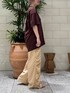 色の組み合わせが可愛くて選んだコーディネート🌰🏷 《ニット》 バックスタイルがポイントです。 今回はキャミで着ていますが、シアーのカットソーなんかを合わせても可愛いです🎶 サイズ:ゆったりめで、ボディラインを拾いません。 《パンツ》 ありそうでなかったカラーのパンツ。 サイドのシルエットも可愛いです。 形はシンプルでトップスを選びやすいです。 サイズ:普段36~38を着用しており、こちらはウエストちょうどよく着られました。私の身長(158cm)にはやや長く、ヒールのあるシューズを合わせて履きたいパンツです。 ┈┈┈┈┈┈┈┈┈┈┈┈┈┈┈┈ Instagram:___m073___ オンラインでお買い物していただく際に、少しでも商品の良さやサイズ感、素材が伝わりやすいように心がけております。 お役に立てたら嬉しいです。 Instagramのフォローもお気軽によろしくお願いいたします。