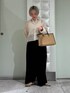 お出かけシーズンに向けて、旅行に着ていきたいコーディネート👜 上下ともシワになりづらい素材ですが、カジュアルになりすぎないのでお出かけ着としても◎ 《シャツ》 今年トレンドのシアーのシャツ。 肌なじみの良いベージュは、インナーを同系色に合わせて透け感を柔らかく見せました。 身幅がワイドですが、着丈は長くなくインせずに着られます。 《パンツ》 トップスがマットな素材だったので、ボトムスは光沢感のあるブラックを選びました! サイズ:普段36~38を着用しており、こちらは調節せずに着てちょうどいい着丈とウエストのサイズでした。 ┈┈┈┈┈┈┈┈┈┈┈┈┈┈┈┈ Instagram:___m073___ オンラインでお買い物していただく際に、少しでも商品の良さやサイズ感、素材が伝わりやすいように心がけております。 お役に立てたら嬉しいです。 Instagramのフォローもお気軽によろしくお願いいたします。
