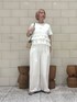 涼し気なワントーンコーデ🤍 レイヤードでシンプルになりすぎないようにしました! 《ブラウス》 下にキャミやタンクトップを合わせてノースリーブのブラウスとして着ても可愛いです! わたしはできるだけ腕を隠したいので、下にTシャツを重ねてベストで着てみました! フリルでボリュームはありますが、着丈は短めで身幅もコンパクトなのでスッキリ見えます。 キャミワンピースやオールインワンに重ねるのもおすすめです。 《パンツ》 履きやすいコットンのパンツ。 マットな素材で白も透け感が気になりづらいです。 裏地まで綿100%の夏におすすめのパンツです。 サイズ: 普段36~38を着用しており、こちらはちょうどよく余裕を持って履けました! 《サンダル》 普段23cmを履いており、こちらは6でちょうど良いです。 (甲高、幅広)以前5を購入したところ少しきつかったです、、 ┈┈┈┈┈┈┈┈┈┈┈┈┈┈┈┈ Instagram:___m073___ オンラインでお買い物していただく際に、少しでも商品の良さやサイズ感、素材が伝わりやすいように心がけております。 お役に立てたら嬉しいです。 Instagramのフォローもお気軽によろしくお願いいたします。