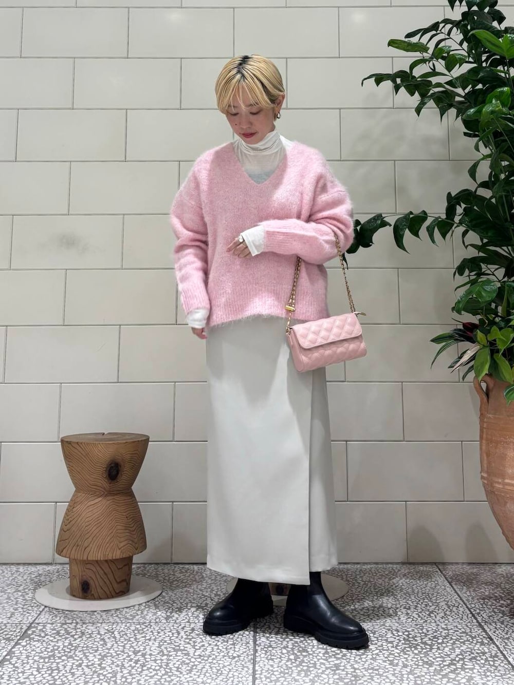 ピンクをポイントにまとめたコーディネート🎀🪄 《ニット》 まずカラーに一目惚れしました! 毛足も長くてふわふわした素材感はより女性らしさをプラスしてくれます。 Vネックは中のインナー次第で見え方が変わってきます。 今回は透け感のあるタートルで合わせてキレイめカジュアルな印象にしました。 ロゴTシャツを来たり、シャツを着ても可愛いです。 《スカート》 ラップスカートですが、後ろジップなので座ったり動いても開くことがなく安心です。 普段36~38を着用しており、こちらは36でちょうどよく履けました。 タイトすぎないシルエットで幅広いテイストで使えます。 Instagram:___m073___ URBAN RESEARCH 渋谷ヒカリエSinQs店 03-6434-1476 店舗通販も承っております。 ======通販方法========================== お電話にて承ります。 クロネコヤマト宅急便にて代引き発送。 商品到着時に、<現金><クレジットカード><デビッドカード> のいずれかにてお支払いいただけます。 ※通販でのUR CLUBポイント使用は不可となっております。 ======================================= {商品合計代金} + {代引き手数料}330円 + {送料}全国一律330円 (※税込5000円以上ご購入で送料無料) ----------------------------- 商品の仕様やサイズ感についても お気軽にお問い合わせください。 =============================
