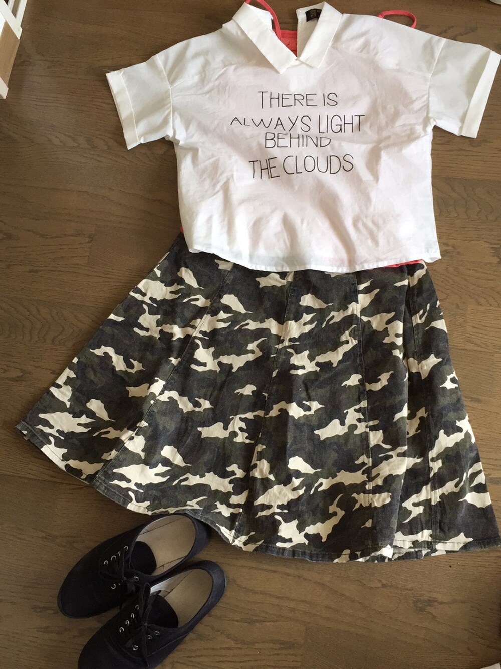 今日はお気に入りのミモレ丈迷彩柄スカート💙💚💛いっつもTシャツだからたまには違う感じにしてみたよ🎵とっても暑い暑い1日でした〜☀️☀️☀️明日も頑張ろう!!!