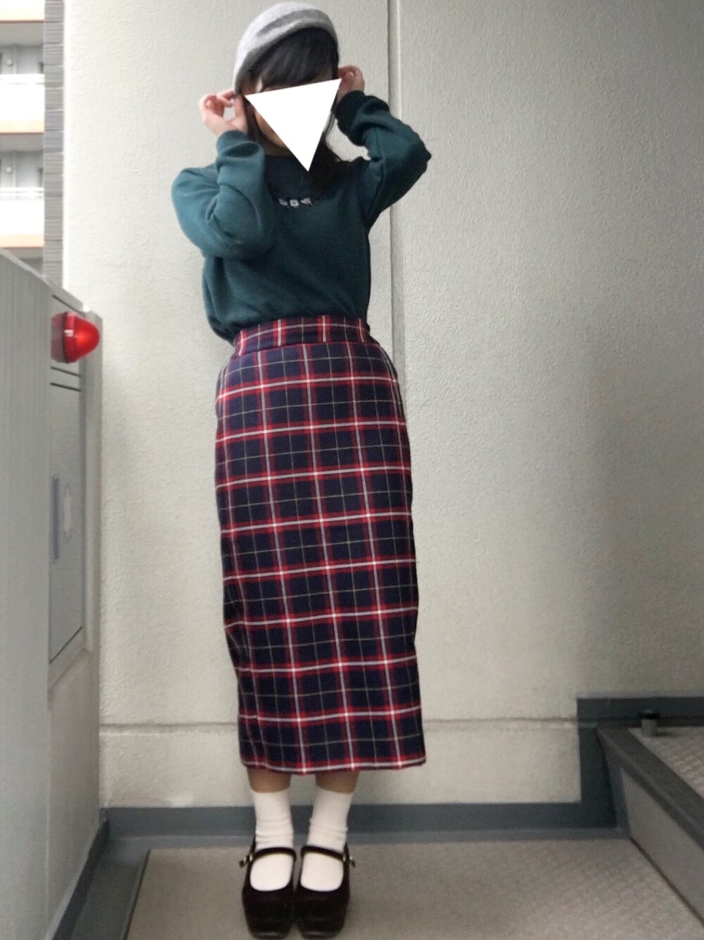 レトロガーリーな雰囲気に仕上げてみました! 深緑色のトップスは、刺繍でミッキーがかいてあって可愛いんです!! GUのチェックスカートを合わせてレトロに◎ ベレー帽と足元を女の子らしいアイテムにしてガーリーに◎ (キャップとスニーカーにすると雰囲気が変わるのでそれもいいかなと思います!)