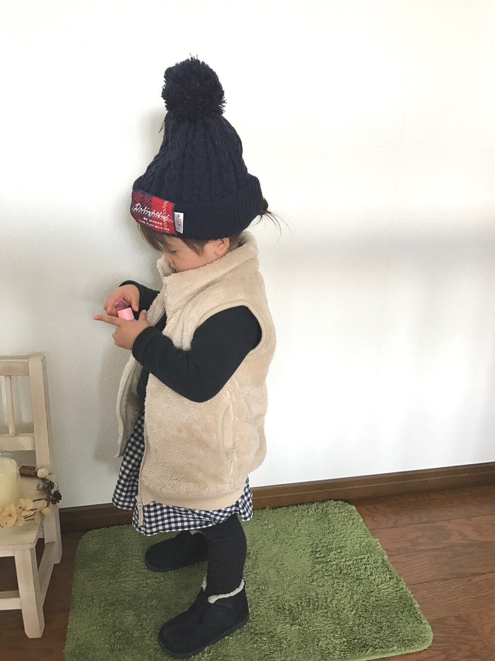 覗いてくださりありがとうございます😊いいねやsaveもとっても嬉しいです♡ 今日はユニクロのファーベストコーデです♪ 子どもがふわふわのファーを着てるとぎゅーっとしたくなっちゃいます😍 最近写真を撮る時に何かおもちゃを持たないと撮ってくれません😓