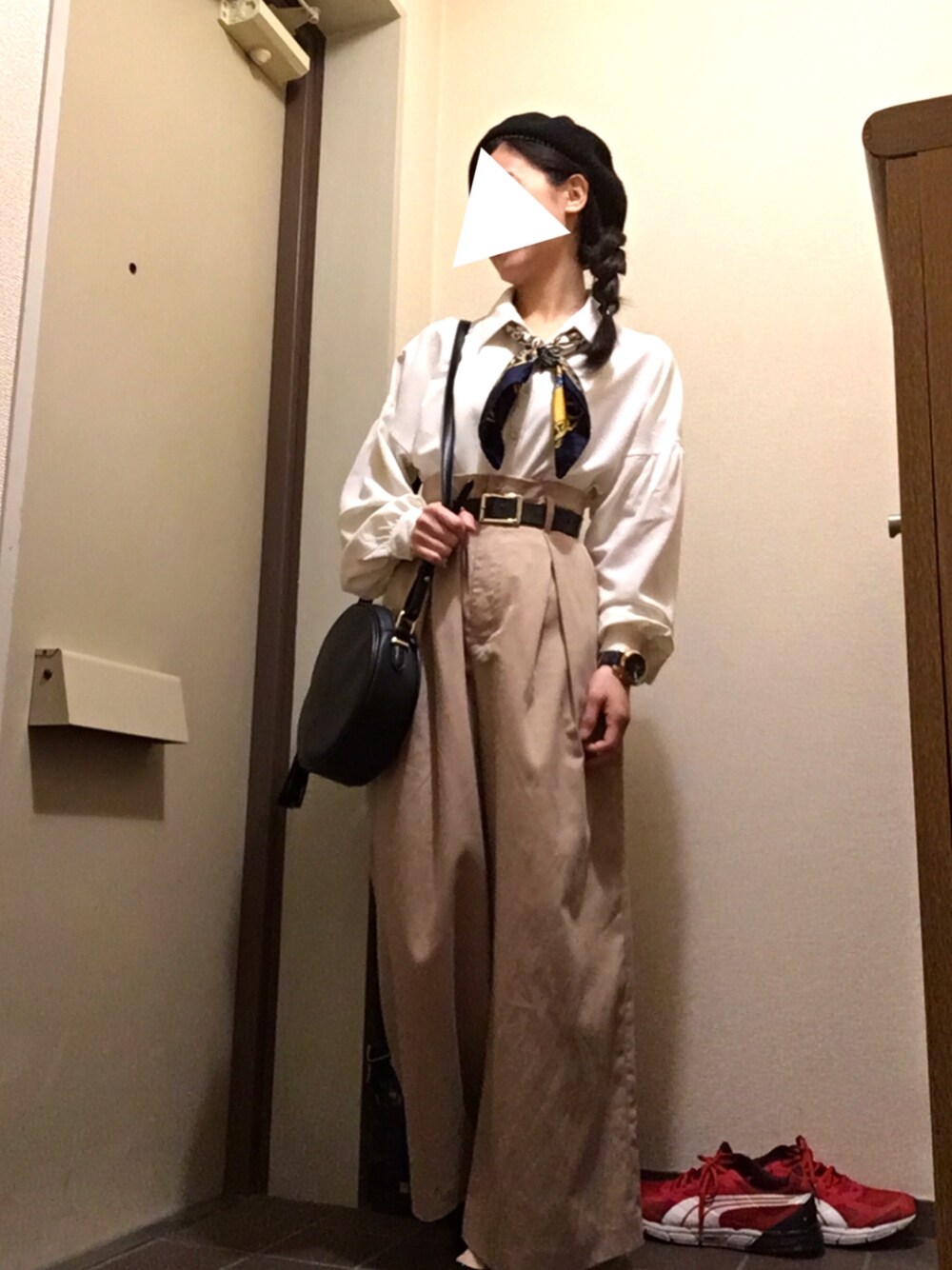 またベレー帽w もはやオシャレとは言えない ワイドパンツとトップスのシャツは最近のお気に入り♡ シャツの袖がボリューミーで好き♡