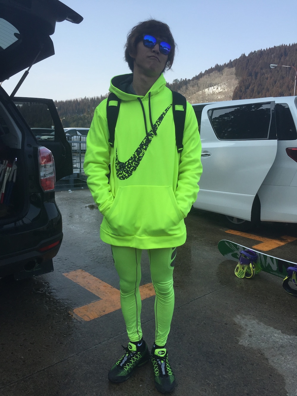 全身蛍光コーデ。