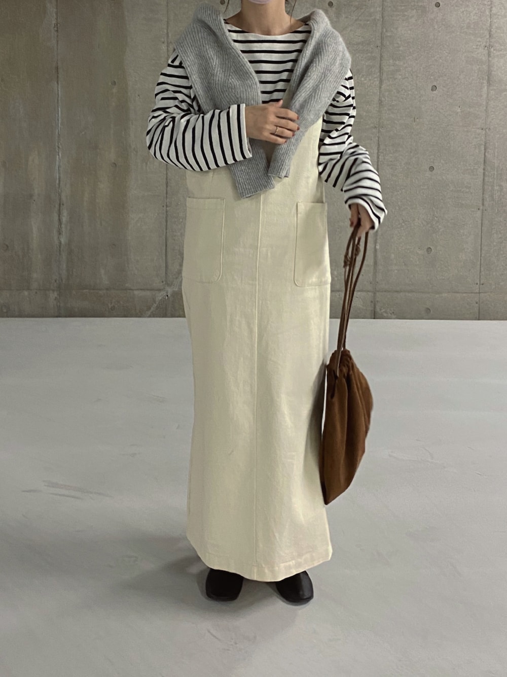 ボーダーに白いジャンパースカート