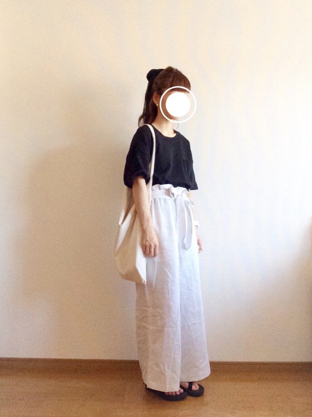 白 × 黒 髪にくくったスカーフ 実は紺色。 陽射しが強くって、 今日は日傘を持ってお出かけ。