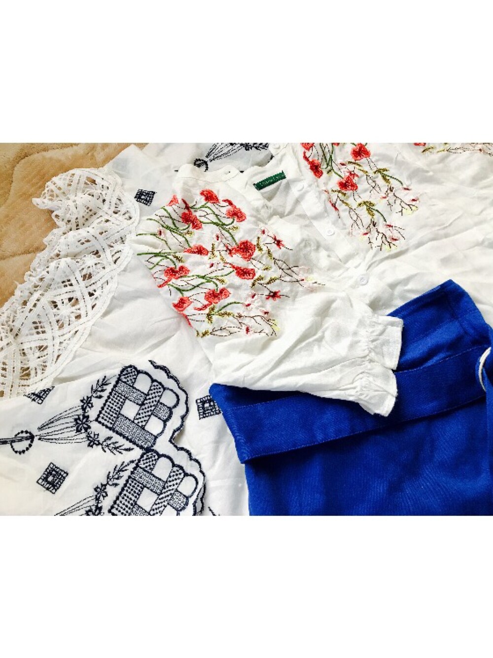 刺繍大好き💝 左は肩のレースが😻2900yen 右はカラフルな刺繍が😻3900yen 早く着てお出かけしたい