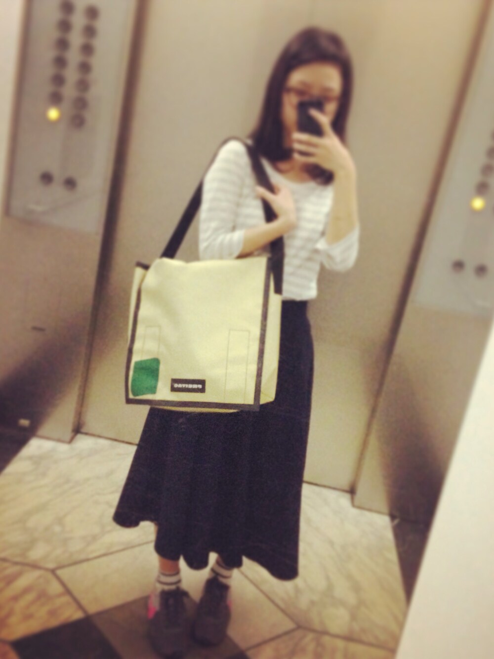 tops:SM2 skirt:GLOBAL WORK shoes:NIKE bag:FREITAG