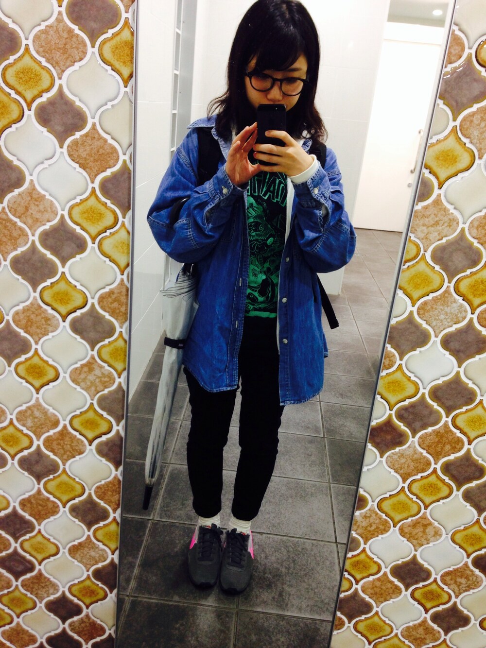 Tシャツ:バンT(ザ・50回転ズ) パーカー:ユニクロ デニムシャツ:もらいもの パンツ:H&M スニーカー:NIKE ライブじゃないけど、ライブ行くときのお洋服(^O^)