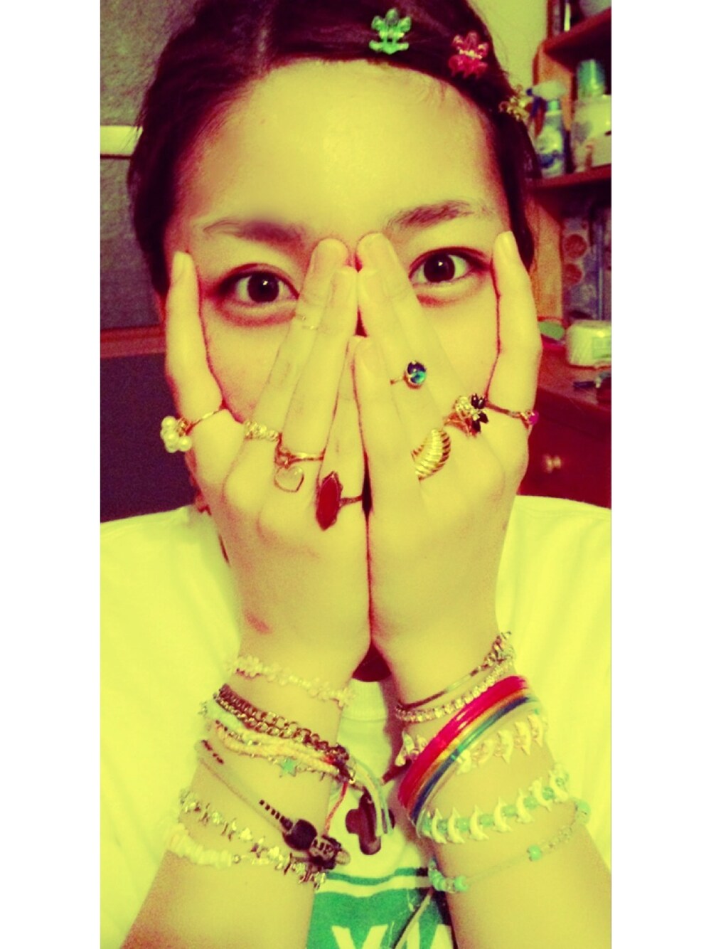夏だからこんなジャラジャラしてみたかった! ということで家で練習💍💎👑🎀😹