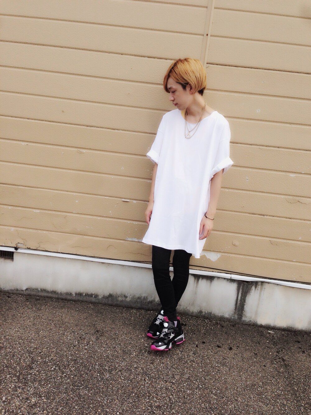 ビックT 襟を自分で切りました ビックTにスキニーにスニーカー この組み合わせが大好き