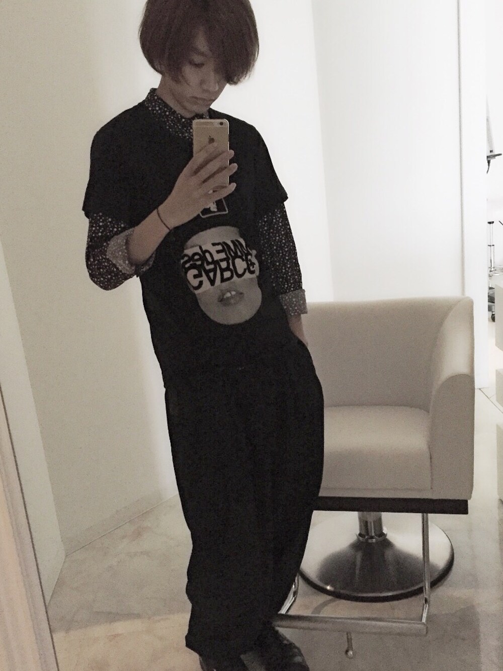 仕事着 やっぱりBlackが多くなる でも1番落ち着く色 だいぶ髪も伸びてきた