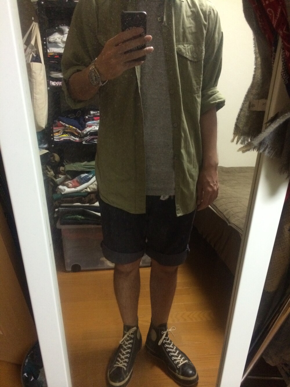 Shirt:40's Lee HBT Tee:80's champion 88/12 Plain Bottom:80's Lee corduroy shorts Shoes:40's BF Goodrich canvas shoes Watch:70's Omega seamaster300