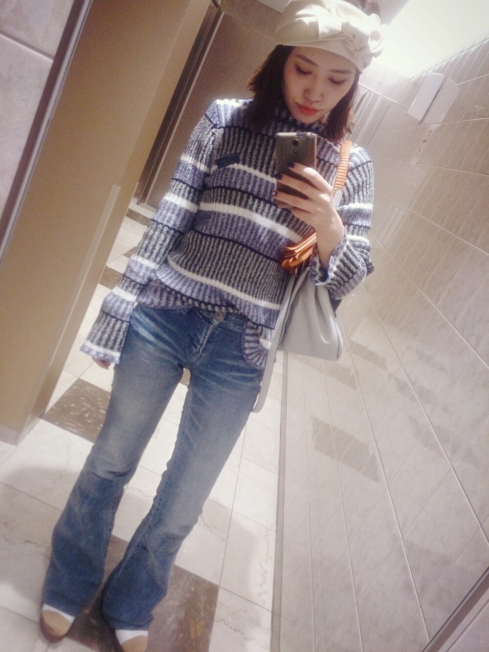 アダムエロぺの今季のシーズンテーマでもあるnature of the maindを意識したコーディネート🙊🙊☀ またまたトイレから失礼します😱💦(笑) デニムが好きだからわたしのファッションは8割デニムです😂😂💓 今日はめっちゃ寒かったですね〜😫😫 早く暖かくな〜れ😫☀☀