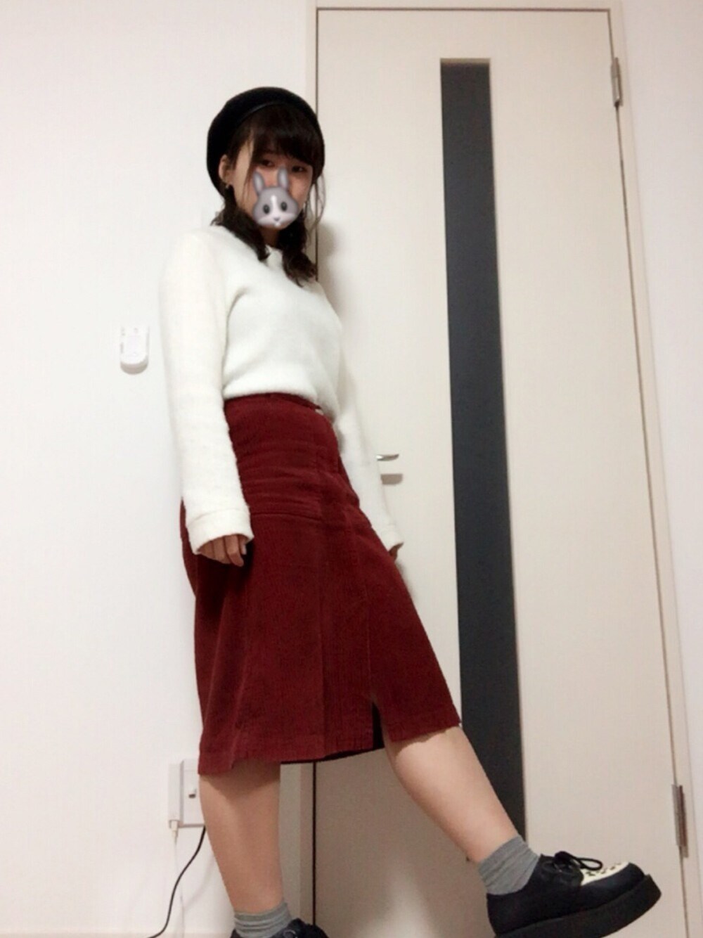 触り心地が良くてふわふわなニット♡ なおかつあたたかい使える子なのです🐰 kastaneのコーデュロイスカートは 初投稿以来で久しぶり感が〜😂( 笑 )
