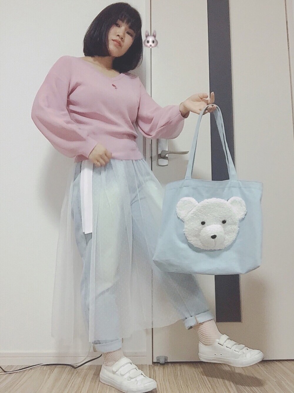 ピンクと水色一番好きな色 なんですけど、反対色なのに むしろ合わせると可愛いって素敵😇💓✨ ドラフト最終日、、 沢山コーデ組めて楽しかった😊 前まで大人っぽくて手が出せなかったけど 春夏のdazzlinほんっとーに可愛くて 私みたいな系統の方にもオススメです😤 merryは安定のビビっとくる可愛さ🐻を 予想の斜め上で来るからもう尊敬のレベル😔