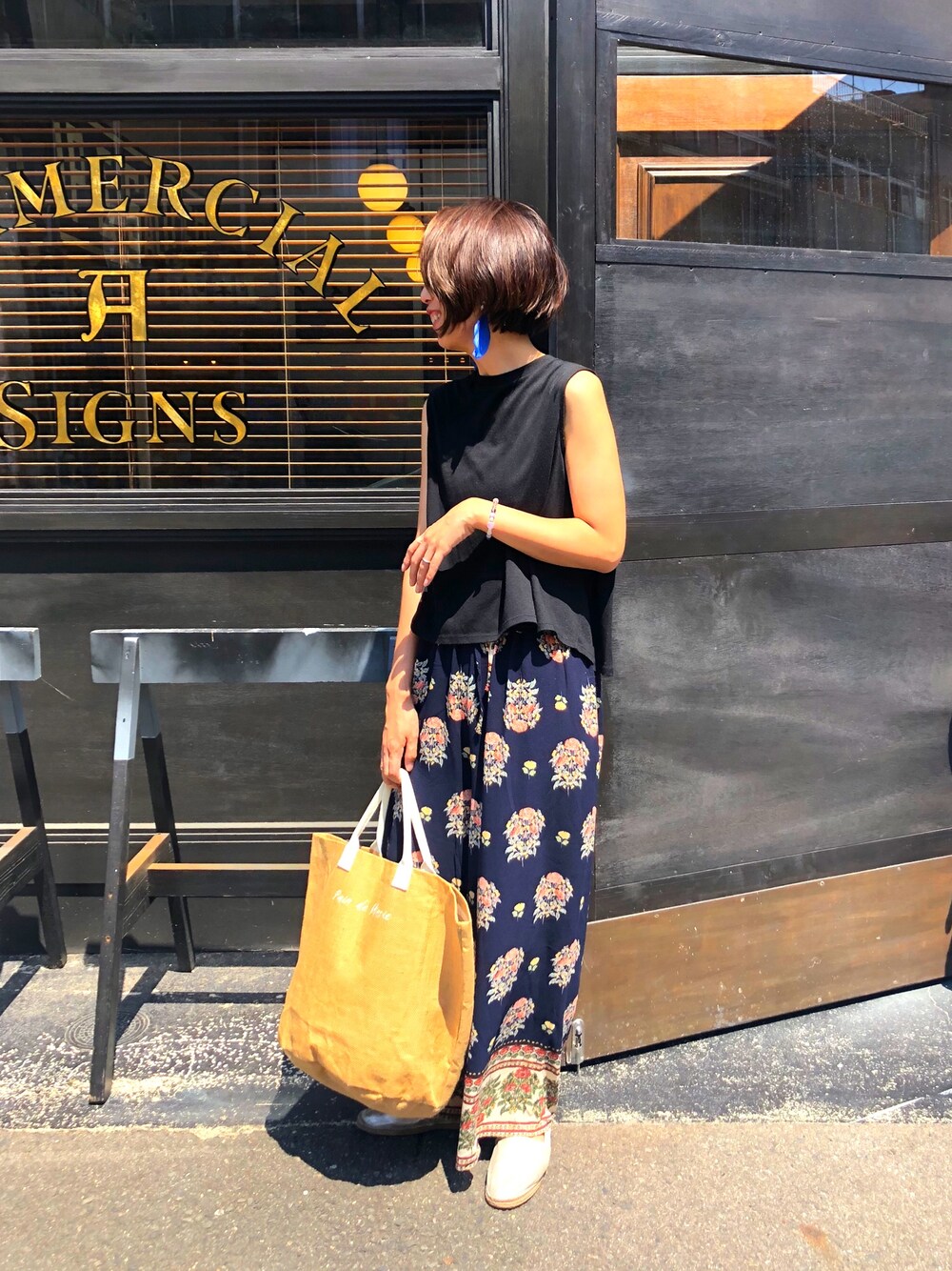 ブラック系のその他パンツを着用したレディースの夏コーディネートの1枚目の写真