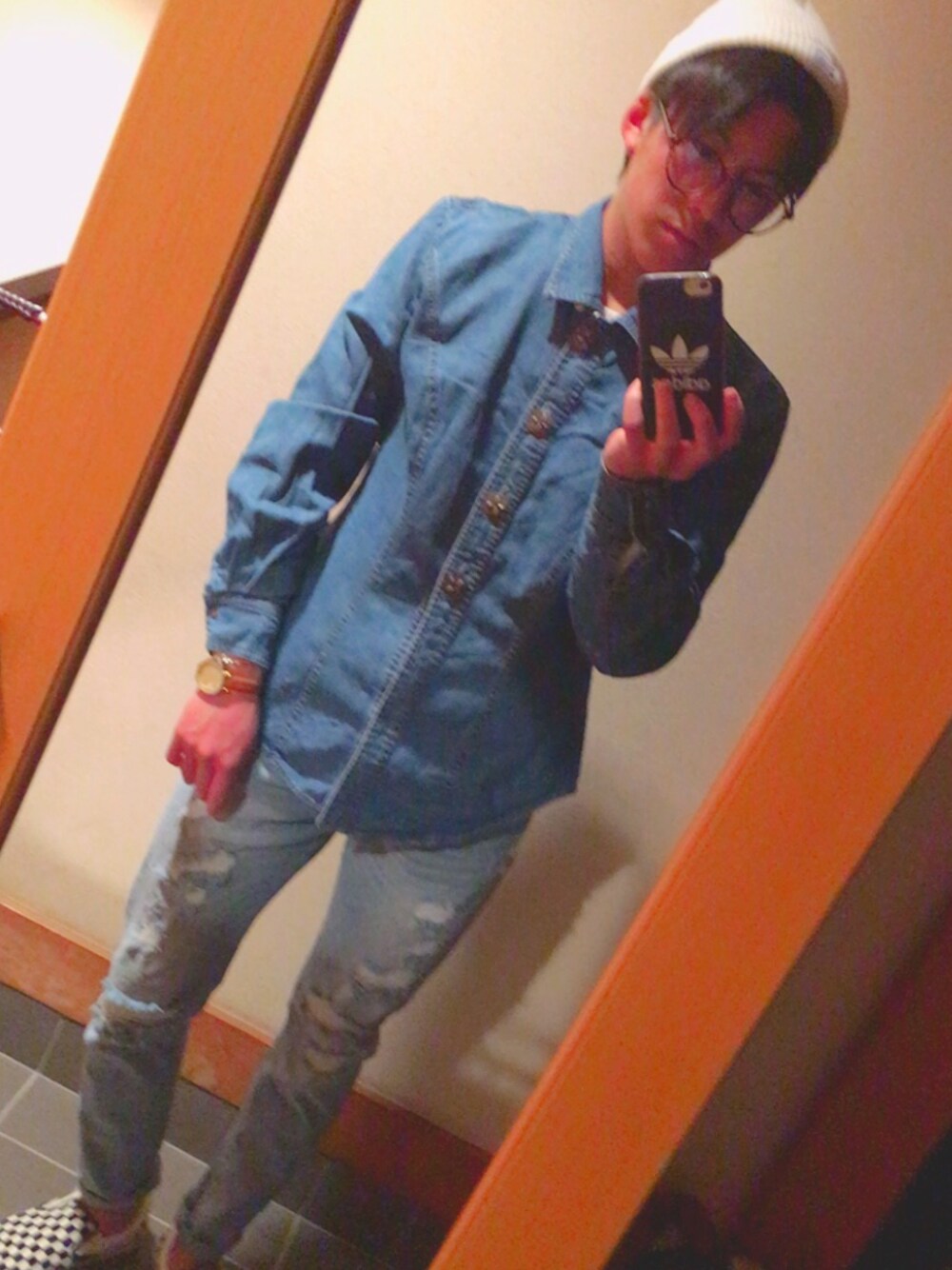 デニム×デニム 着てるデニムジャケットは東京の古着屋で700円🙄まじ低コストだし700円とは思えない良さ笑