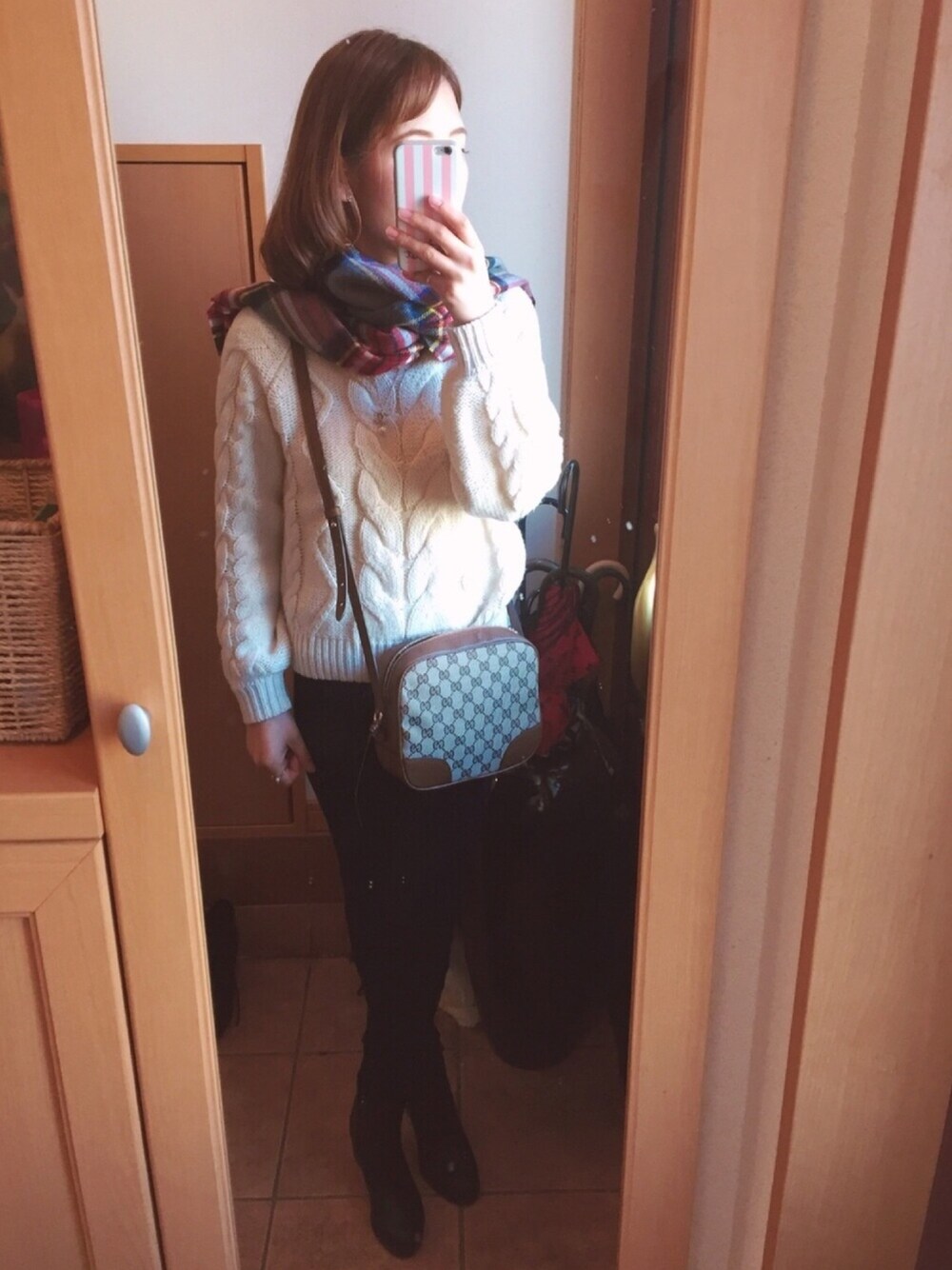 치에♡のニット/セーター「【who's who Chico】Vネックケーブルニット」を使ったコーディネート