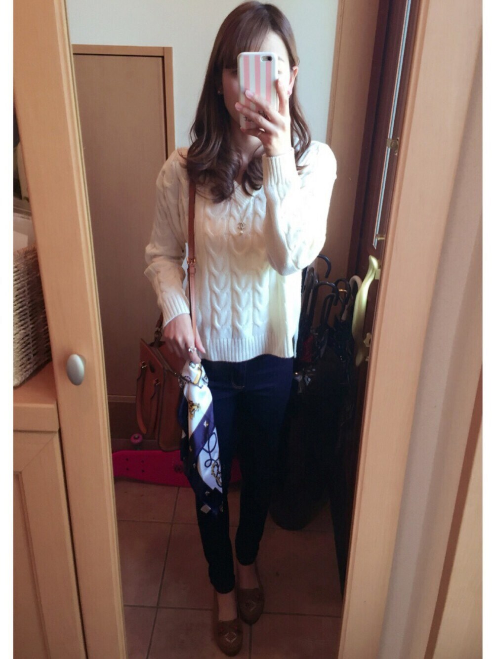 치에♡のニット/セーター「【who's who Chico】Vネックケーブルニット」を使ったコーディネート