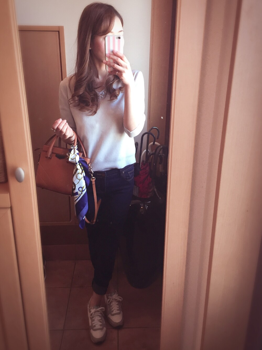 今日は急遽友だちとショッピング♬ 4月から異動のため職場が変わったから、前の職場の方へちょっとした物を渡したくて(*^^*) 友だちに付き合ってもらっていい物が買えました😊✨ 今日もシンプルな感じ🌸 載せるほどでもないけどせっかく撮ったので♡ 最近デニムばっかり&スニーカーばっかりのコーデになっちゃう😂💦