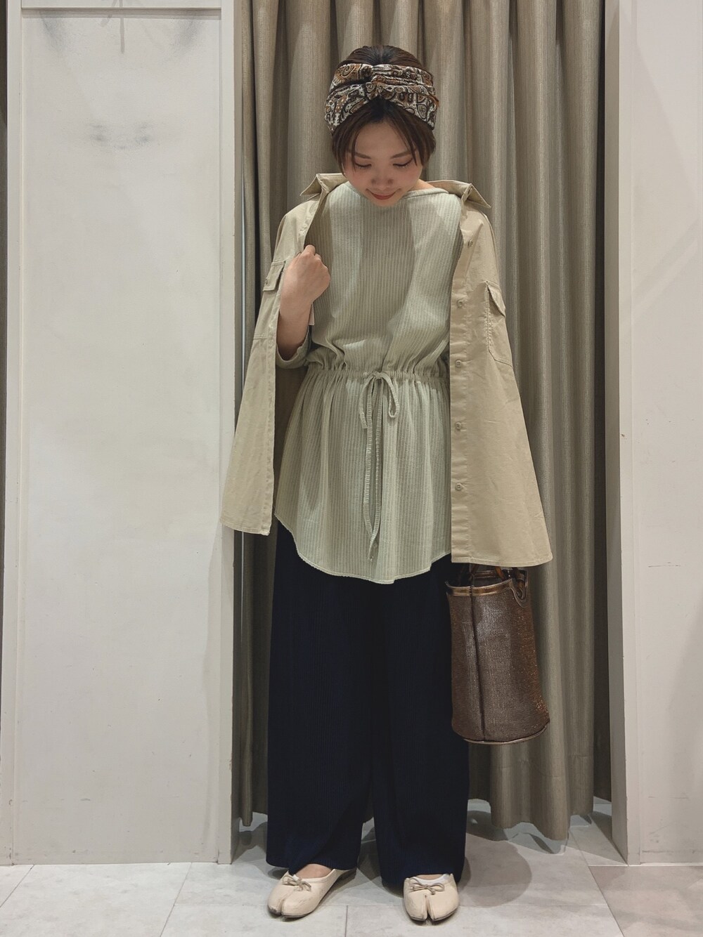 ご覧いただきありがとうございます𓅼 ͗ ͗ 今日は店長が考えてくださったコーディネートでお届け🍈 淡い色合いのトップスもボトムのネイビーが引き締めてくれます🌷
