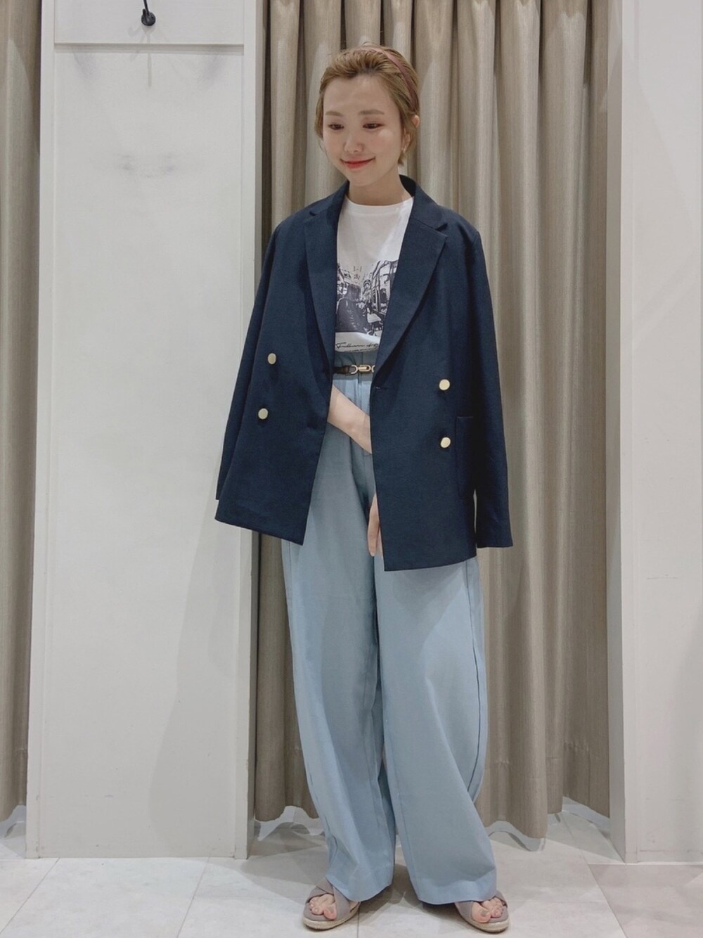 ご覧いただきありがとうございます𓅼 フォトTシャツとジャケットコーデは やってみたかったので念願叶ってです🙌🏼 小窓の『🦕🦕🦕』は現物に近い色味となっております☺︎ くすみブルーな感じがかわいいです♡