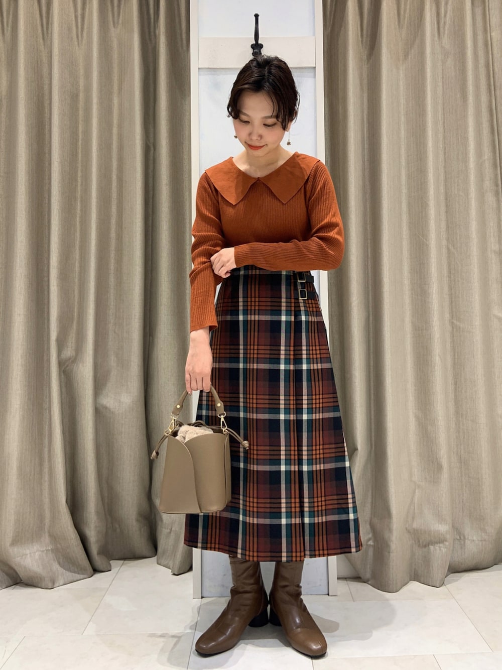 ご覧いただきありがとうございます𓅼 本日販売スタートの貴島明日香さんコラボアイテムです🍁 薄手のニットで適度なフィット感がスッキリ見せてくれます🧶 Aラインスカートのウエストサイドベルトがポイント❕ このデザインがあるだけで可愛いですよね〜〜🥰 サイズはSM展開のS着用です🔅