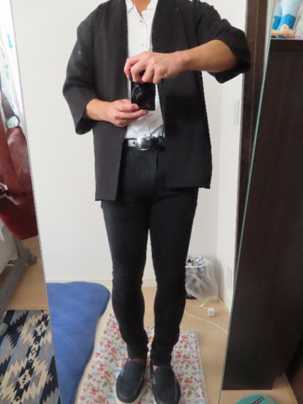 今回のコーデです タックインしてみました☺ GUの柄シャツをキレイめに入れ込んで中和してみました 黒白だけどかっこいいコーデに仕上がったと思います笑 アウター Lサイズ シャツ Lサイズ ズボン 27インチ 靴 24センチ
