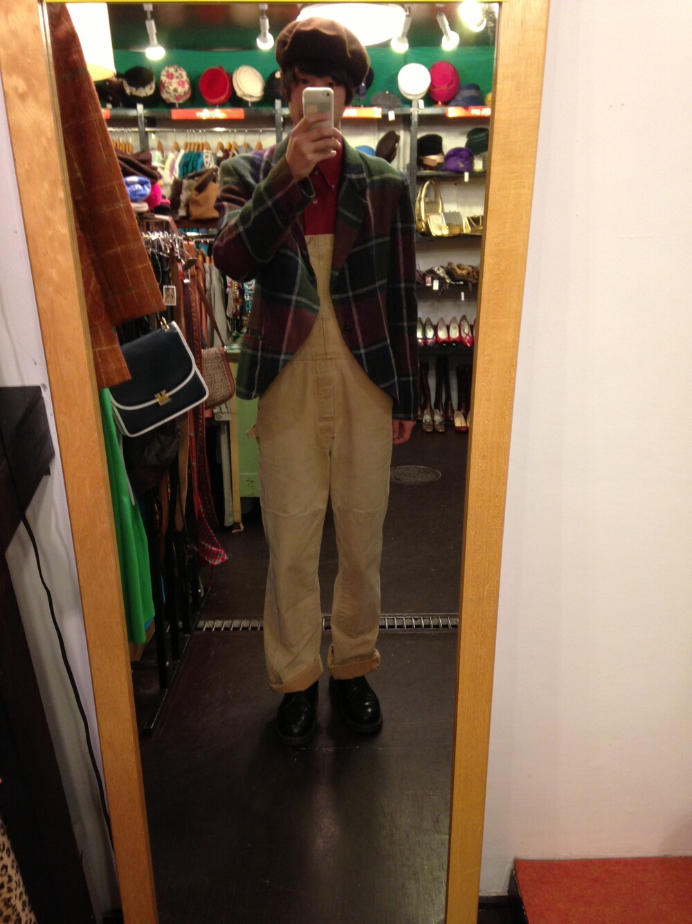 写真が暗くなってしまいました、すいません。 オーバーオールはらくらくなので大好きです!(^^)