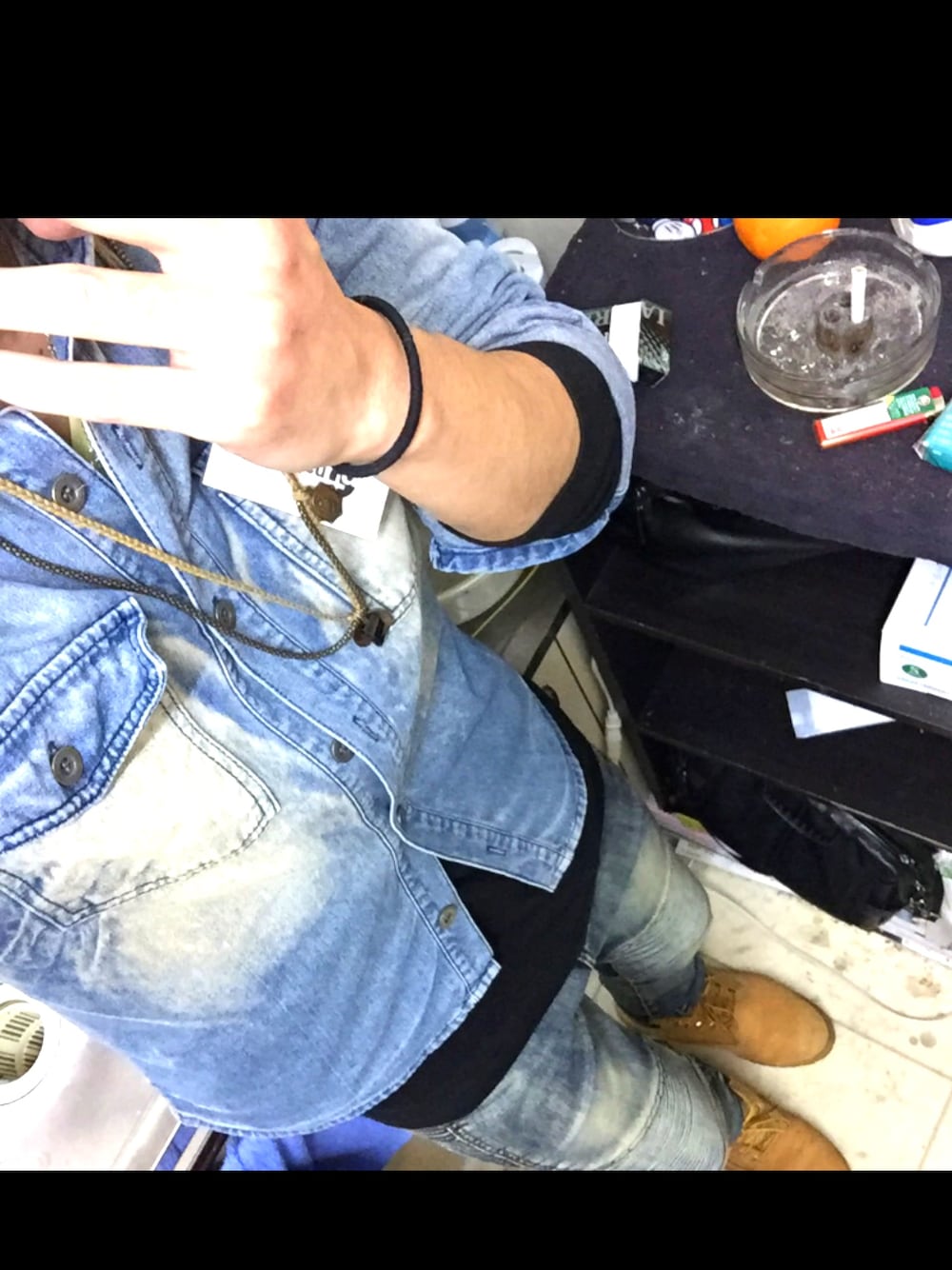 デニムオンデニム笑 バイカーパンツ履きやすい^ ^ これに、リュックとポスターあったら完全にオタク…笑