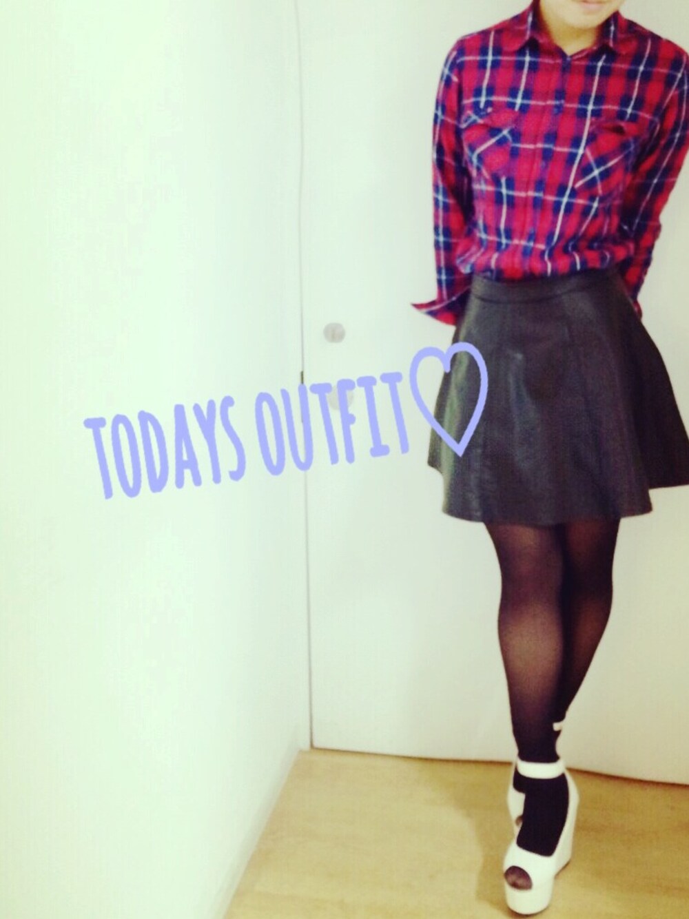 レザーのフレアスカートは形が気に入ってます! 靴はノーブランドです☆ ウエッジソールは歩きやすいので いつも選んでしまいます(´・ω・`)