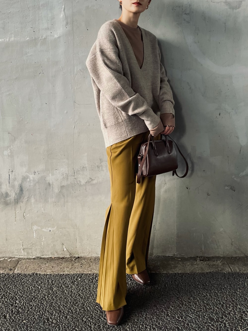 MKのニット/セーター「ディープVネックニット」を使ったコーディネート