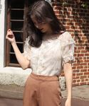 one after another NICE CLAUPのトップス パフスリーブに刺繍のレースで女の子感強かったのでデニムで合わせました