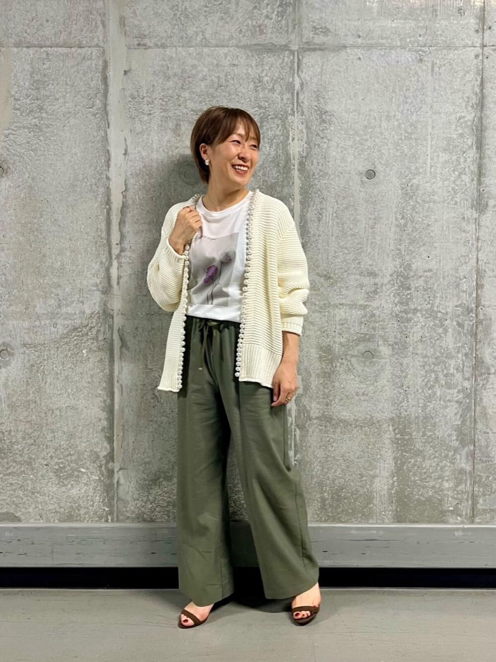 【キレイめカジュアルを可能にしてくれるパールツキカーディガン🌈】 普段のサイズ//36着用サイズ//38 ▷サイズ感// ザックリとしたやや大きめのシルエットで、お尻が隠れるくらいの丈感です!Tシャツやブラウス、タンクトップなど気温に合わせた着こなしが楽しめます♪ ▷着心地// 程良い厚みと伸縮性があり、着心地が良いです◎パールのついたデザインで特別な一枚になっています✨コーディネートの雰囲気に合わせてくれるカーディガンです😊