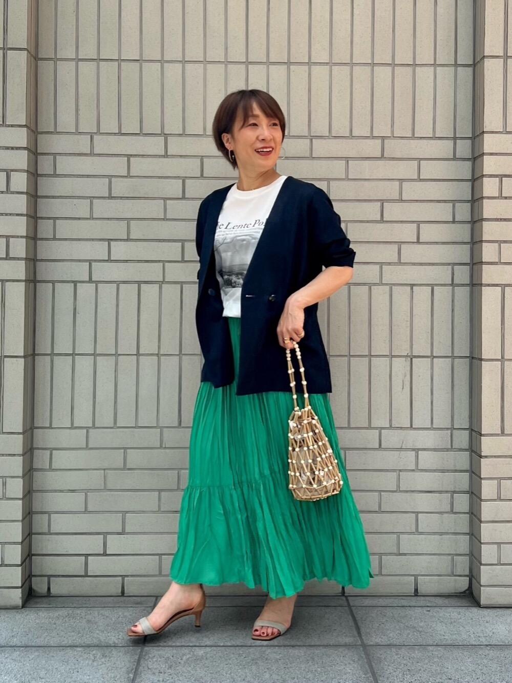 me(le.coeur blanc)のかごバッグ「BAGMATI ウッドビーズバッグ」を使ったコーディネート