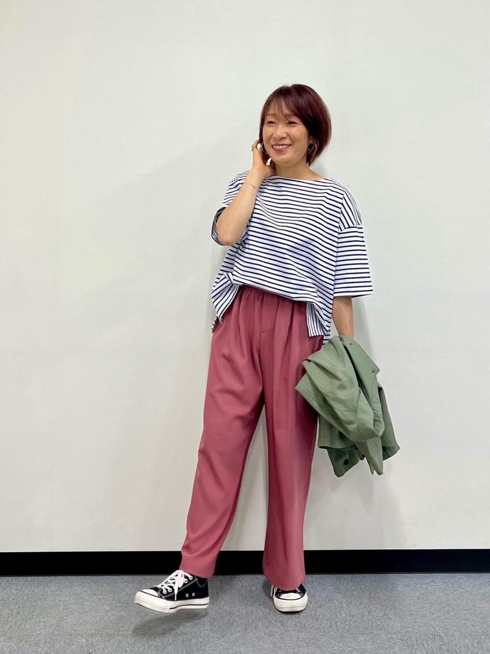 me(le.coeur blanc)のTシャツ/カットソー「オーガニックコットンボーダー5分袖プルオーバー」を使ったコーディネート