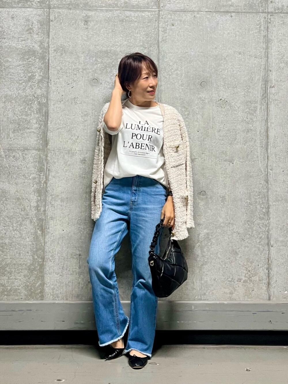 me(le.coeur blanc)のデニムパンツ「ラウンドヘムデニムフレアパンツ」を使ったコーディネート