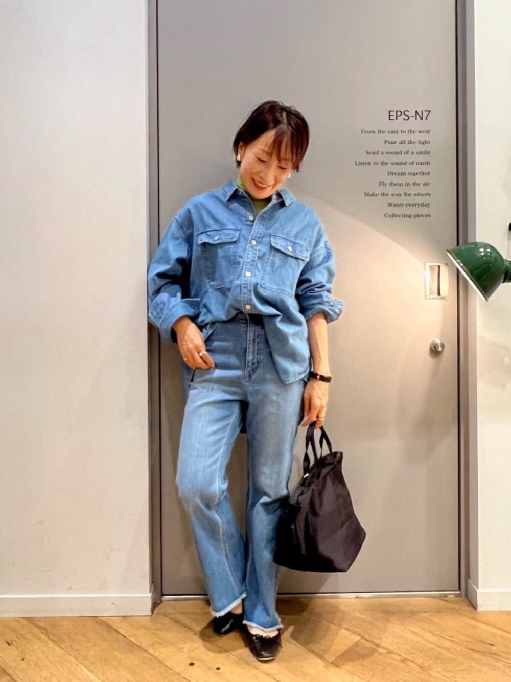 【フラップポケットデニムシャツ】 ▷普段のサイズ:S ▷着用サイズ:38/M ▷サイズ感:身体のラインを拾わないオーバーサイズです🌟ヒップラインまで隠れる着丈になっています👍 ▷素材感/着心地:しっかりした素材感ですが、ライトオンスの柔らかく軽いデニムです!その為、シーズンレスでお使い頂け、レイヤードでもご着用頂けます♩
