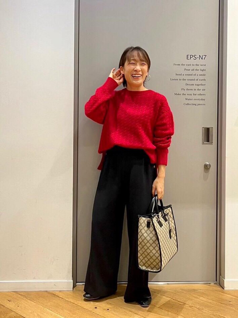 【ケーブル編みクルーネックニット】 普段のサイズ:S 着用サイズ:38/M サイズ感:短めの丈感で、小柄な方でもシルエットよく見えます♪また、細ケーブルの編みなのでフィット感もあります✨ 素材感/着心地: 柔らかすぎないニットです☆しっかりとした生地感ですが、毛20%入りなので、着心地はよく暖かく着ていただけます🤍