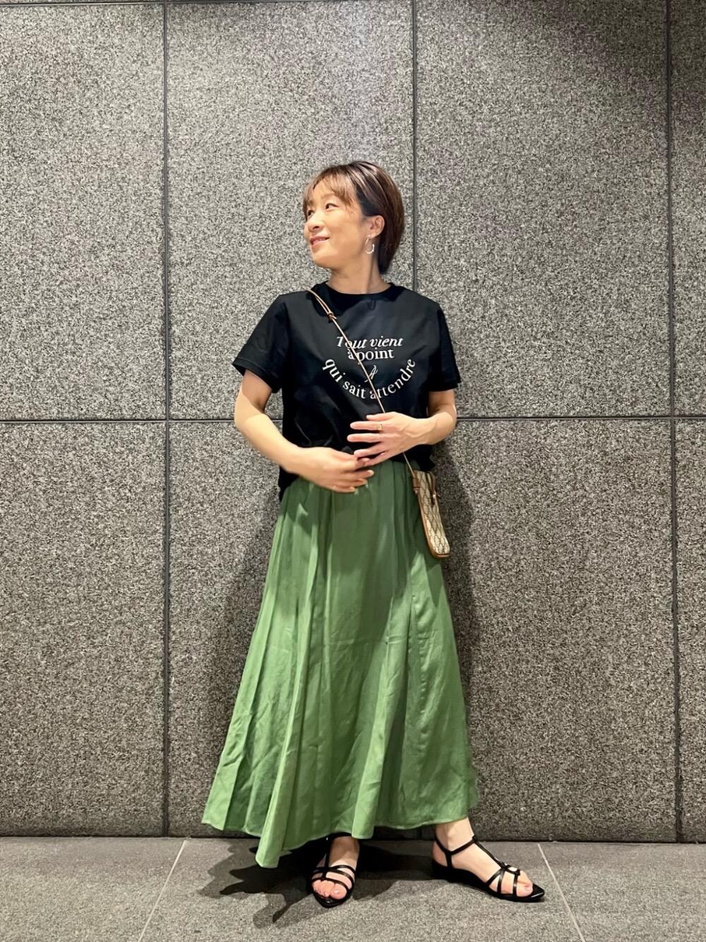 40代/152cm/骨格ストレート/普段サイズ36〜38/着用サイズ38 【リネンライクマーメイドスカート】 サイズ感:広がりすぎないマーメイドラインで、すっきりシルエットです。 素材感: さらっと涼しい着心地です。 着用感:裏地付きですが、軽い着心地で楽に着ていただけます。