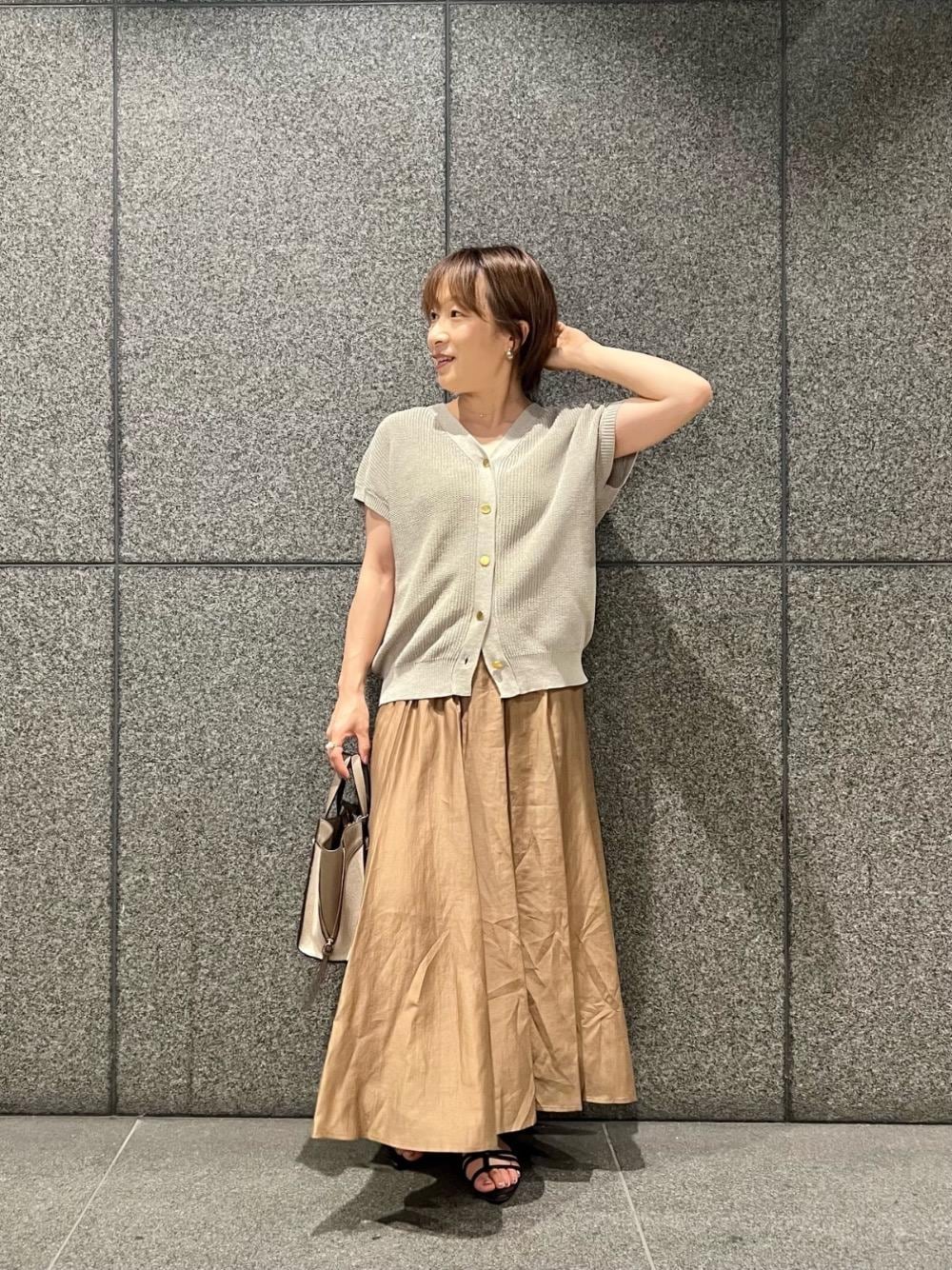 40代/152cm/骨格ストレート/普段サイズ36〜38/着用サイズ38 【ペーパーヤーン2WAYニット】 サイズ感:身体のラインを拾わないゆったりなサイズ感。 素材感:柔らかくてしっかりめの生地。身体馴染みやすい素材です。 着用感:中肉の厚みなので透け過ぎず、インナー合わせで1枚着として可能。